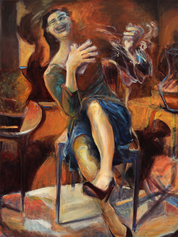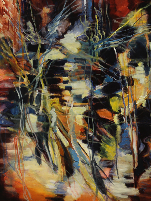These paintings are a departure from my narrative-figurative work. Exploring the connection and separation of my subjects and environments, using a more intuitive and improvisational approach to suggest the energy, tension, interaction, and gesture in a suspended moment. Taking inspiration from rhythms of music and dance to depict space implies sound and traces of movement across the surface of the canvas.